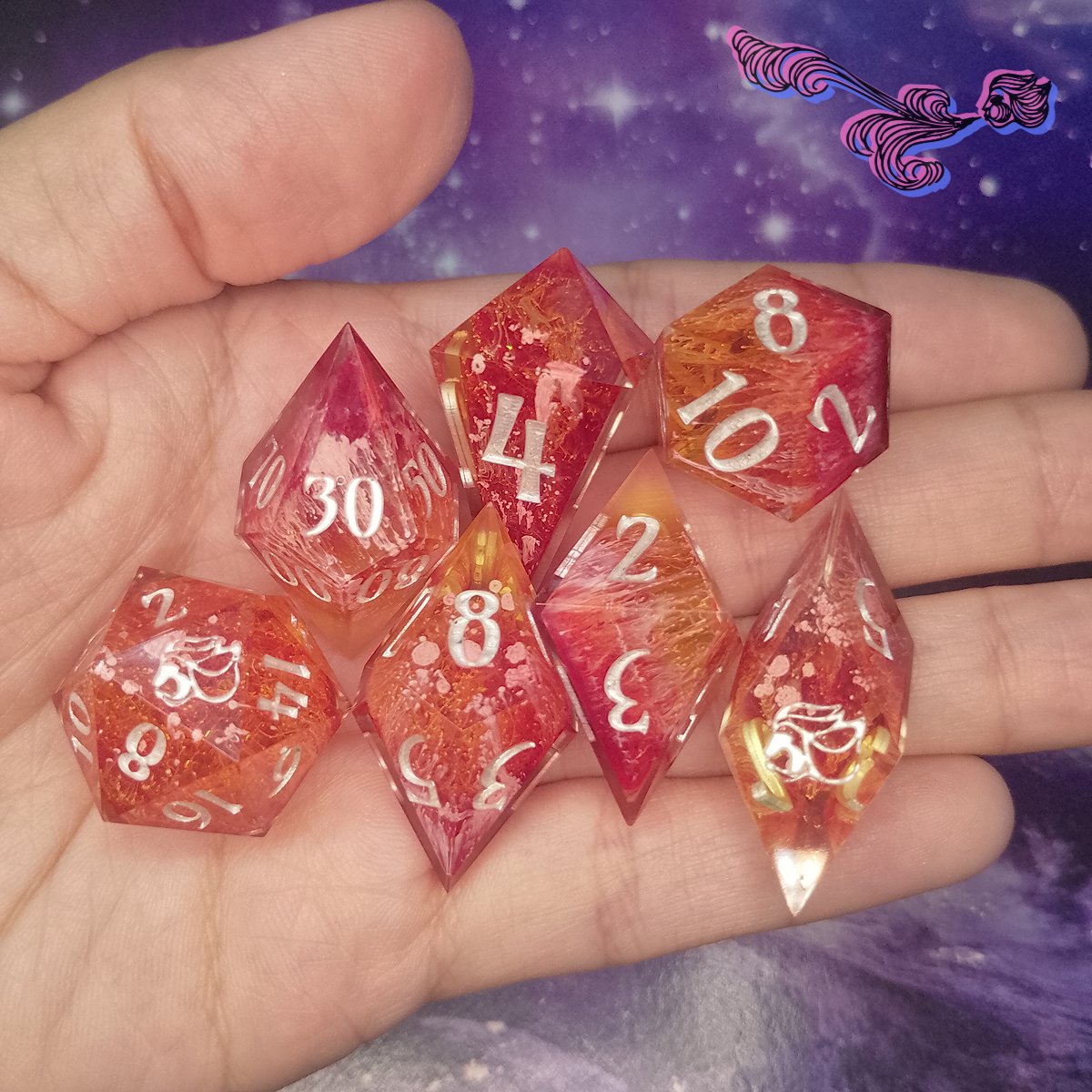 Dados artesanales, fabricados enteramente por nuestrxs alquimistas.